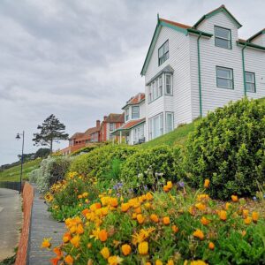 Meeting the coast at Felixstowe Ferry, it’s time to leave the river and head south past Martello Towers, beach huts and villas, modern and historic, to the historic resort of Felixstowe. What about an evening stroll along the prom to admire the beautiful terraced seafront gardens perhaps?
